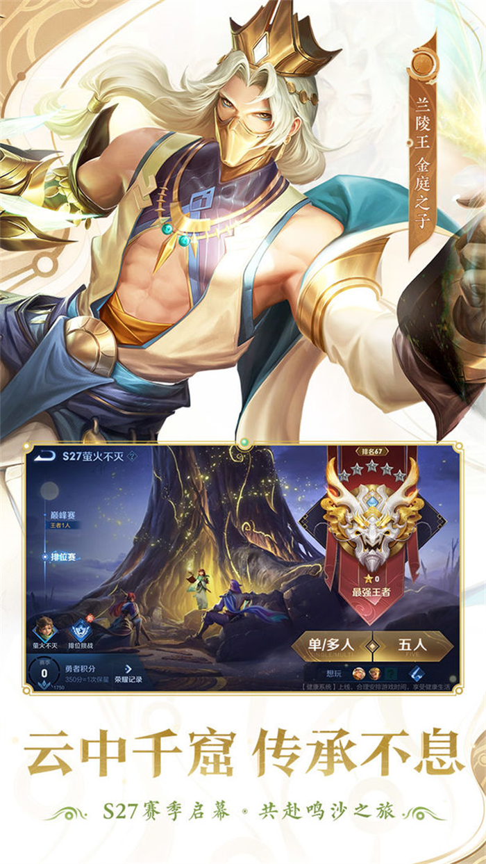 《王者荣耀》是腾讯第一5V5团队公平竞技手游,国民手游大作!5V5王者峡谷、公平对战,还原体验;契约之战、五军对决、边境突围等,带来花式作战乐趣!10秒实时跨区匹配,与好友开黑上分,向最强王者进击!多款英雄任凭选择,一血、五杀、超神,实力碾压,收割全场!敌军即将到达战场,王者召唤师快来集结好友,准备团战,就在《王者荣耀》!