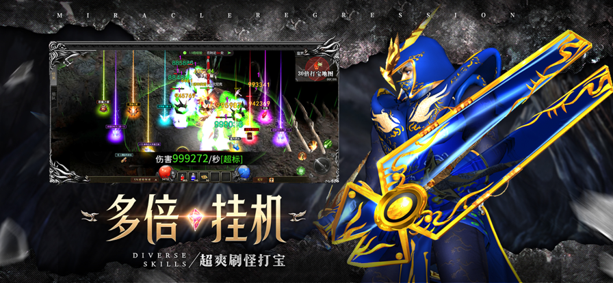 7、卓越狂暴攻速奇迹,体验到割草式刷怪快感,组队升级效率更高,百倍经验收益秒转职,一转、二转、三转,直升400级,踏上大师之路。