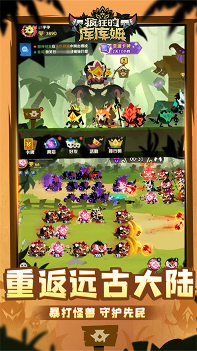 《疯狂的库库姆》是一款休闲养成,快速对战的趣味塔防手游。你将成为可爱的【库库姆】部落酋长,指派自己手下上百个拥有传奇能力的库库姆战士,自由组合阵容,抵御来自于史前的黑暗怪物!