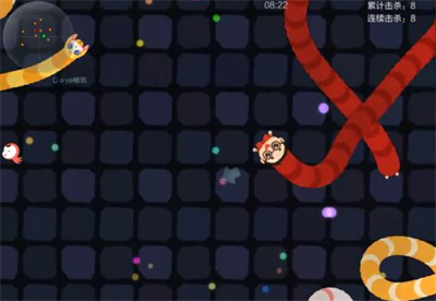 整个游戏规则非常简单,玩家使用摇杆控制蛇蛇移动吃豆豆,并且加入了加速技能,在其他玩家猝不及防时加速冲到对方的必经之路上,若是对方的头触碰到你的身体,他就会变成食物供你吞食。