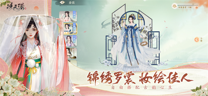 3、绮丽国风换装玩法上线,结合典雅国风与当代时尚的时装设计,各色衣装随心挑选,万千装扮自由搭配,充分发挥你的创造力,是翩翩君子还是巾帼佳人,百般气质由你塑造!