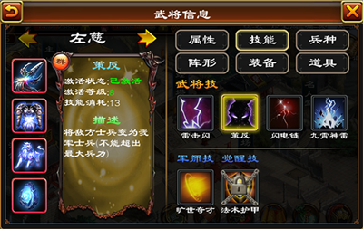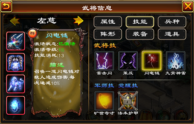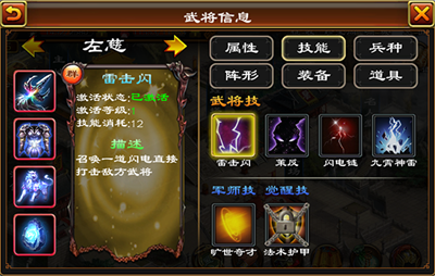 左慈的第一个技能就就是攻击技能,可以召唤一道闪电直接打击敌方武将。既然左慈有道术,那么召唤闪电这样的事情也就不难啦!不过对于神将来说,初始技能并不是特别出众,我们继续看看第二个技能。