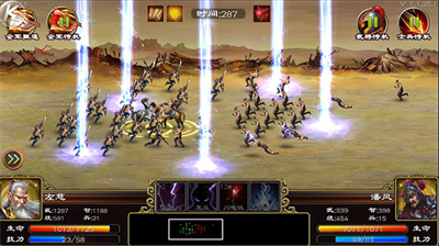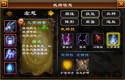 最后一个攻击技能,是一个超级开挂的群攻技能。可以产生五道雷光,从外向内旋转聚拢,于中心产生爆炸!不用多想,光看技能描述已经可以知道杀伤力有多大了。这个大招一出,相信对面至少会死一半!如果玩家先用第二个技能偷敌方一部分兵力,再用这个雷光大招轰过去,还怕打不赢吗?!