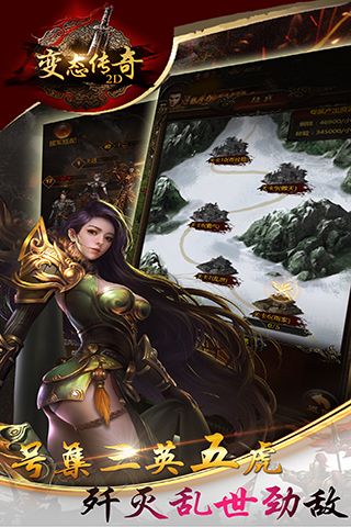 《变态传奇2D》是一款极具创新玩法的传奇手游,其中包含首创的帮派挑战闯关玩法和其极具特色的帮派英雄体系都是市面上独有的创新系统。《变态传奇2D》还在RPG的经典玩法层面上搭配上独立的装备特色系统,每件装备均附带有不同的称号、不同的套装效果,使每件装备都更加丰满更具有差异性,让稀有强大的装备更加珍贵!精美的游戏场景、生动自然的角色形象、华丽的组合技能、激情火爆的刷怪PK,打不完的BOSS教主,一切尽在《变态传奇2D》!