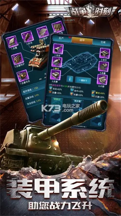 4.发挥你天才的改造天分,打造属性相生相克的无敌坦克战斗群.灵活的组合搭配,成就属于你的沙漠雄狮,获取装备、打造配件!不相信一劳永逸,只有keep going,才能抹杀一切潜在的危机.