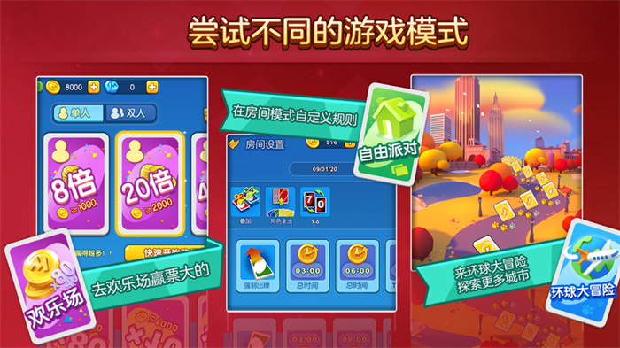 3、好友聚会,玩法却不一样?连续+2+4、换牌、双打……自由定义比赛规则,让你体验不同乐趣,麻麻再也不怕我和小伙伴玩不到一起去啦!