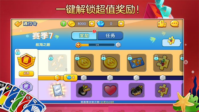 北京时间2021年12月31日 10:00:00 – 2022年1月21日 09:59:59 UNO手游3周年大奖持续放送。