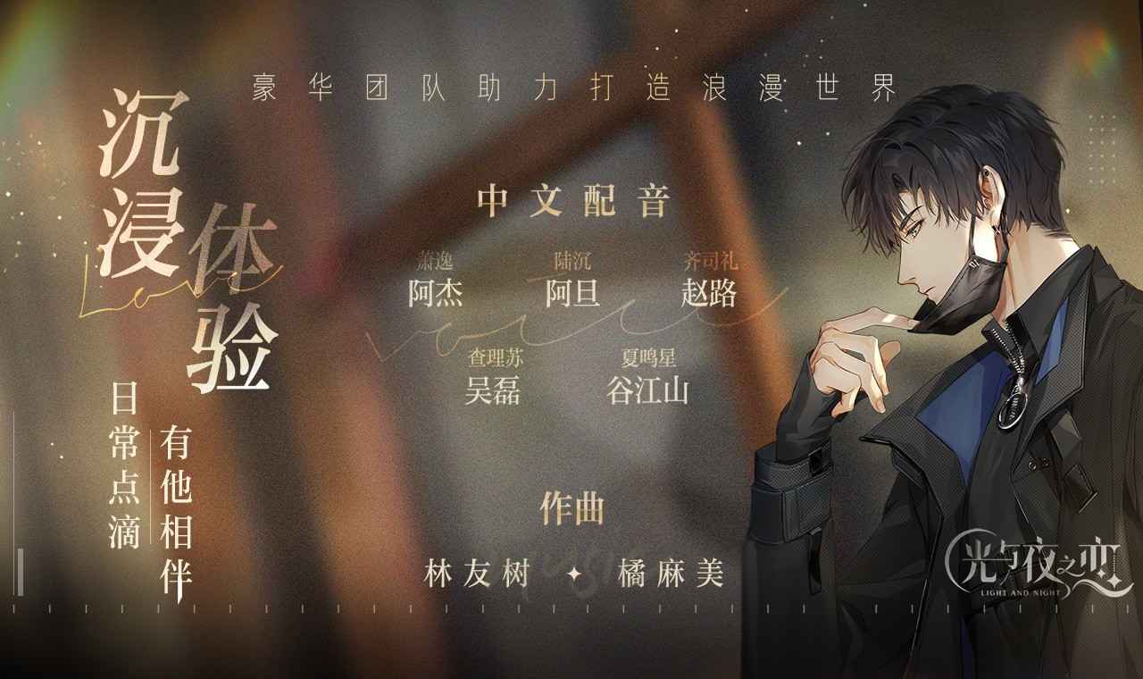 带给玩家更好的视听享受,是《光与夜之恋》团队秉持的追求和目标。为此,游戏特邀多位知名作曲家为游戏打造配乐。诉说幕后故事的同时,由橘麻美老师倾情创作的全新音乐也首次与玩家见面。充满恋爱感的悦耳旋律,让人沉浸在《光与夜之恋》独特的甜蜜氛围中。