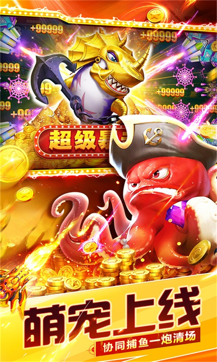 3、经典街机捕鱼玩法,4人实时同屏,真实竞技!
