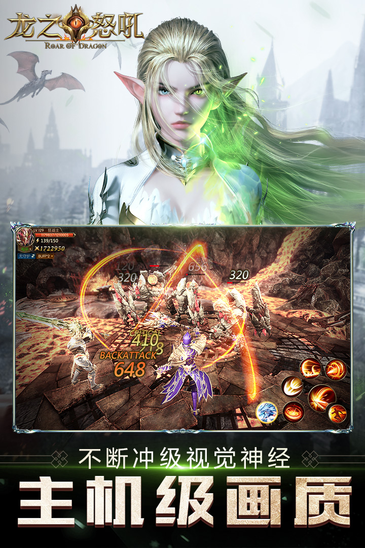 在《龙之怒吼》中,你将拥有双形态变龙特技,能在战斗中变身巨龙秒杀全屏,还能化为龙神掌握全新技能,让你绝地翻盘,体验双形态切换的战斗快感。游戏致敬最经典的奇迹网游,加入奇迹战法弓三职业,并且独创性地引入龙元素,从龙血、龙晶到龙形铠甲、龙神浮空,甚至坐骑及宠物都是不同龙形态。游戏在奇迹经典的恶魔广场刷经验和BOSS打宝玩法基础上,更是独创永恒战场PVP,体验刺激的BOSS争夺战、与战盟兄弟公平打宝、自由交易,用流光龙神套装、幻彩羽翼装点你的角色,一起见证巨龙的奇迹!