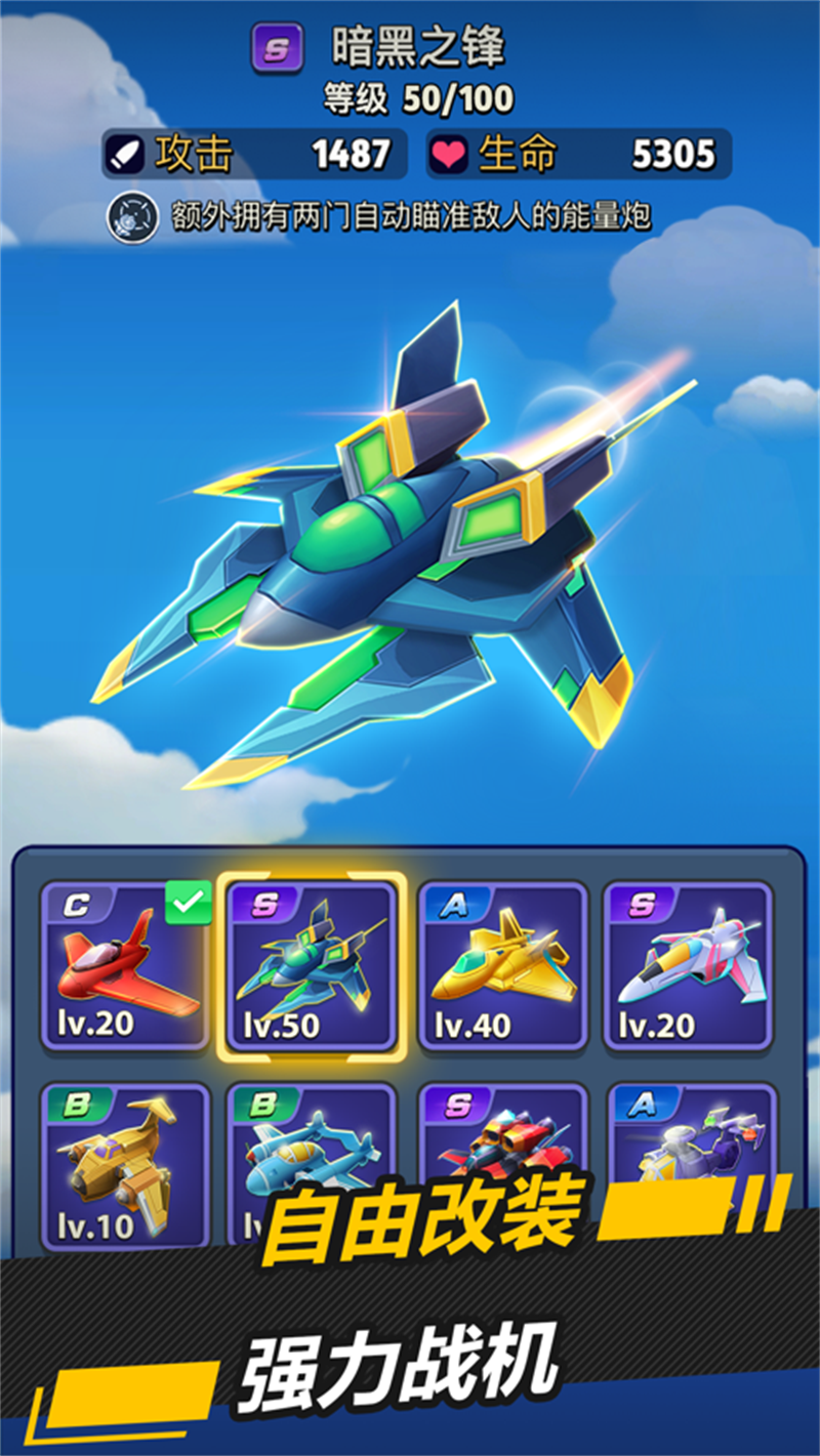 4、新式的改装系统,可以改造你的战机,成为专属于你一人的战机。