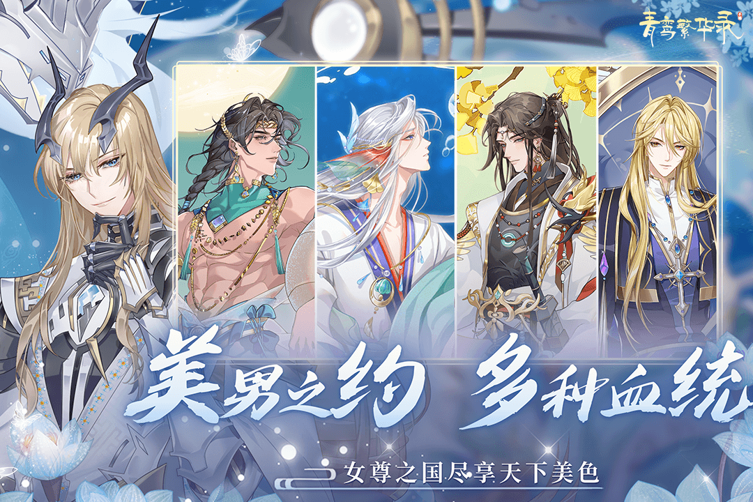 - 【唯美国风,多款美男心动立绘】 精细唯美的立绘,多款高颜值美男时刻相伴,更有妖魔、天使、鲛人、文物、草药等不同血统,打造最具华丽与梦幻的国风世界。