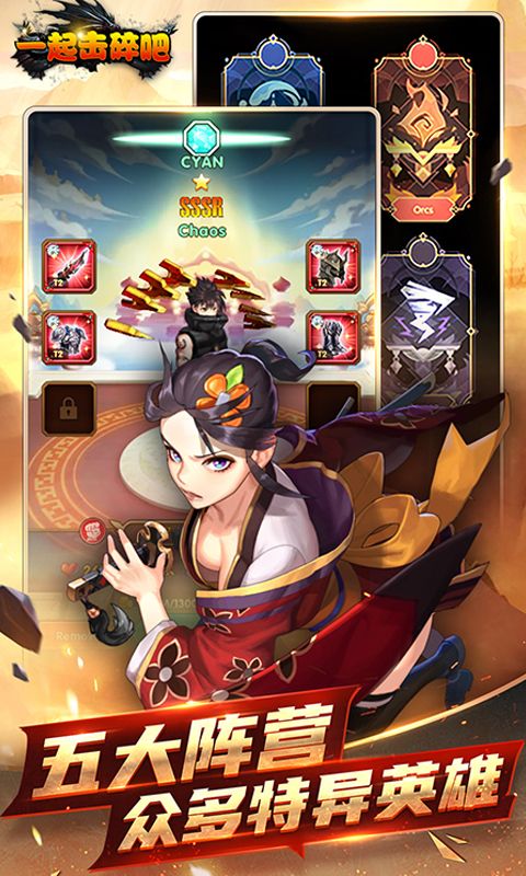 《一起击碎吧》是一款放置类策略游戏,以架空的魔幻世界为背景,在游戏中你可以招募不同阵营的英雄,来组建只属于你的队伍。你需要合理部署阵容搭配,让队伍发挥最强大的实力,带领队伍走向最终的胜利!