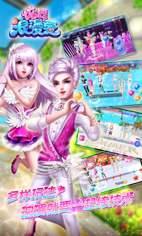 浪漫的舞蹈游戏,高颜值的舞蹈游戏,靓丽的3D人物形像,充满质感的服装饰品,极具冲击力的灯光特效,语音系统与亲属系统入,专注社区交友互动。