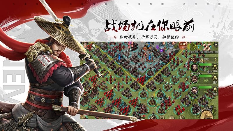 大秦帝国之帝国烽烟官方是一款大型国战题材的即时战略竞技游戏,该游戏采用了虚拟的引擎系统为玩家打造了一个恢弘壮观的沙盘世界,你将化身为主公,通过招兵买马来组建自己的势力,还有不同的神将为你所用。