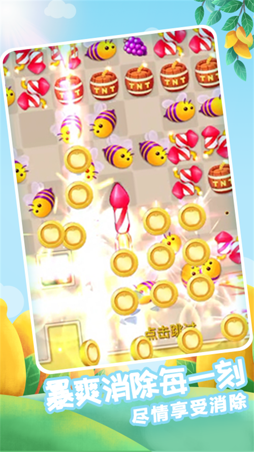 3.在五颜六色的水果乐园中,玩家可以通过连接相同颜色的水果来消除它