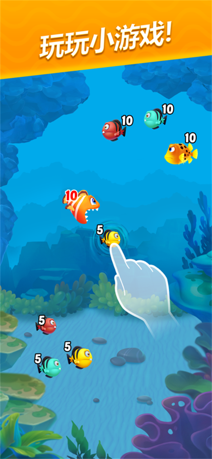 4.喂养属于自己的小鱼,每条鱼都有自己的个性,陪它们玩耍,和它们对话,搞怪逗趣的鱼儿们一定会让你乐趣连连!