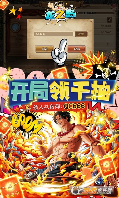 1、开局输入礼包码“onepiece”即可领取1000连抽,强力伙伴任性抽!