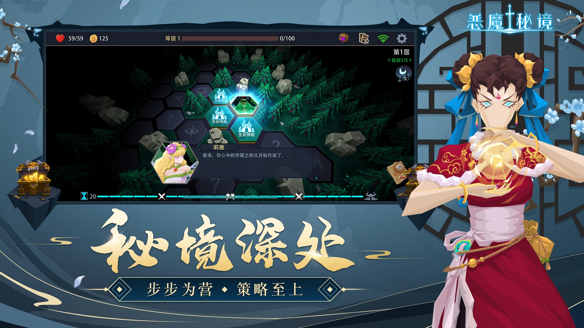 恶魔秘境下载为游戏玩家们带来的是一款蜂巢迷宫式Roguelike卡牌手游。恶魔秘境手游下载中,你将会化身不同的英雄,赶在强大的恶魔到来之前,在恶魔秘境免费下载中探索各类事件,努力丰富牌组、强化实力,最终战胜恶魔!