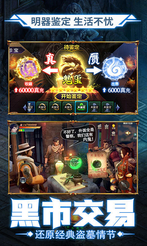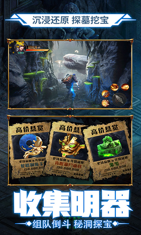 3.创新盗墓宝藏玩法,花一点点体力即可沉淀在3D打造的地下世界,摸金、探秘神秘的上古遗迹,金币、银币、装备掉落不停!