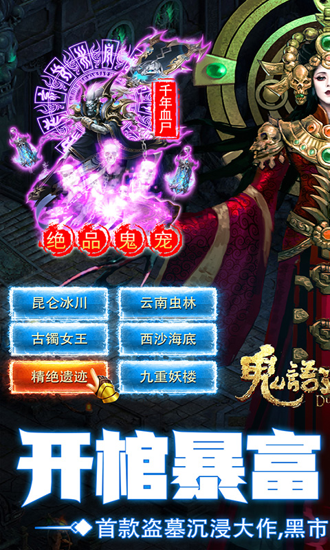 还原沉浸式盗墓摸金手游,自由交易获得免充! 内容介绍: 全新版本《鬼语迷城》是一款3D国漫风格的探险类手游,以历险故事为背景,沿用经典人设,讲述一行人历经万险寻求古城,穿过沙漠和雪山,进入神秘世界的匪夷所思故事。在探险的基础上,开创交易宝物可得免充等全新玩法! 带你开启神秘世界之旅。
