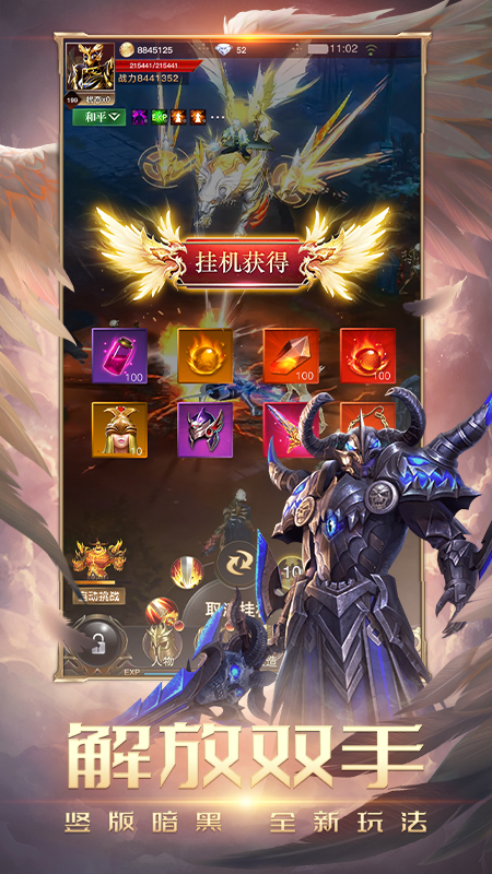 装备超高爆率,一键挂机,暴打BOSS,轻松护肝,神装入手就是这么简单。随机副本,多种玩法,告别无聊的刷刷刷,一起来开动脑筋,挑战极速通关!