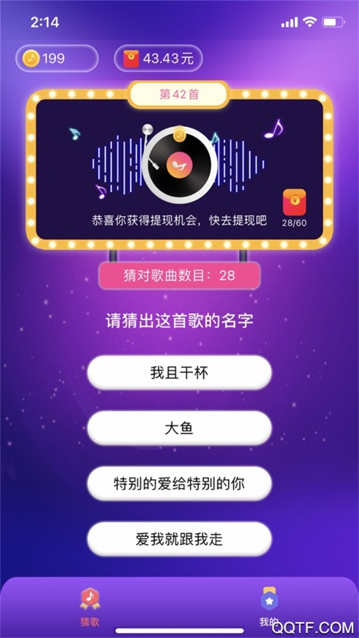 人人猜歌领红包版是一款真正能够赚钱的猜歌游戏,这款游戏玩家可以享受到绝佳的猜歌赚钱乐趣,进行多种闯关,通过猜歌来赚钱,强大的猜歌赚钱模式,让玩家可以享受到绝佳的赚钱乐趣,还在等什么,快来下载吧!
