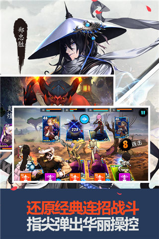 合击技是《剑灵》首创的战斗玩法,只有多名玩家通力合作,才能制服危险的敌人。《战斗吧剑灵》忠实还原了这一设定,并且为了更符合手游的特点,进行了专门的改进。当玩家将敌人打出异常状态后,所有具备对应连招的卡牌都能对敌人进行追击。部分职业还能打出二段连招,将敌人击打浮空,进行再一次的连招追击。