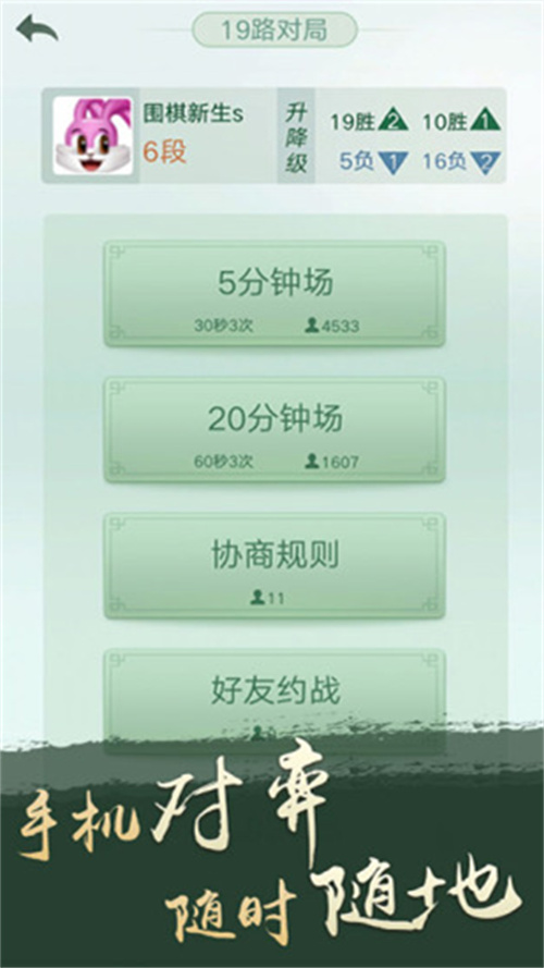 4.为玩家设置的围棋等级用户能够通过不断的对弈获胜提升等级