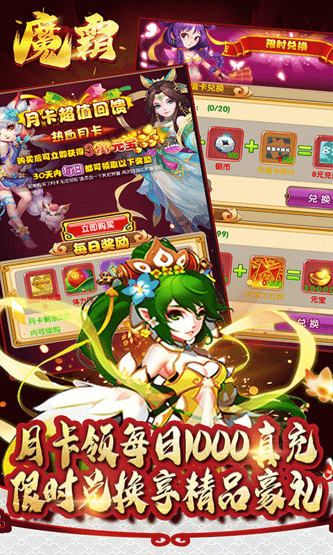 3.最强月卡福利,每日送1000元真充卡与海量材料!一键推图,解决您的最大烦恼!
