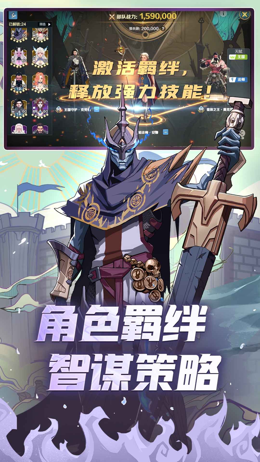 五大阵营统帅集结,多种羁绊及兵种克制,搭配更多元的阵容组合!特色守护灵系统,丰富加成机制,提升策略深度!