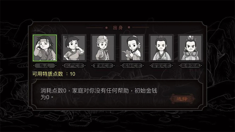 1.选择开局自带的天赋,左边的是属性天赋,中间是道具,右边是资质天赋,玩家可以根据自己的喜爱来选择。