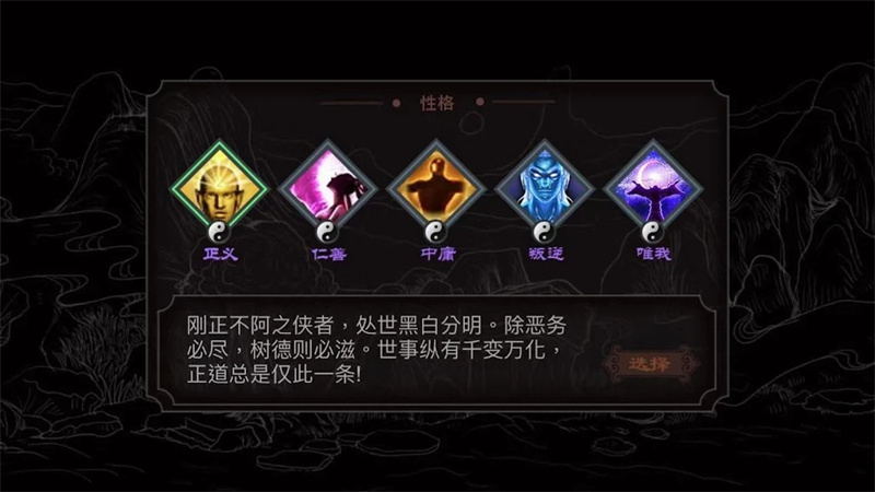 4.首选需要自己去创造一个人物,在这玩家需要编辑好自己的名字,还要表明立场(刚正、仁善、中庸、叛逆、唯我)。