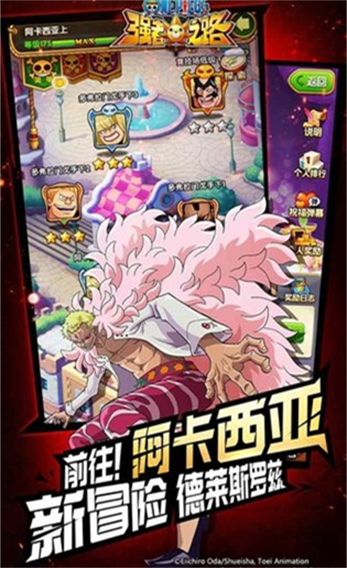航海王强者之路手游,是一款根据动画真实改编的回合制战斗卡牌手游,除了还原动画故事情节、人物以外,同时还打造了收集成就与培养玩法,让玩家可以在游戏中找到更多好玩的地方,大大提升游戏的可玩性。