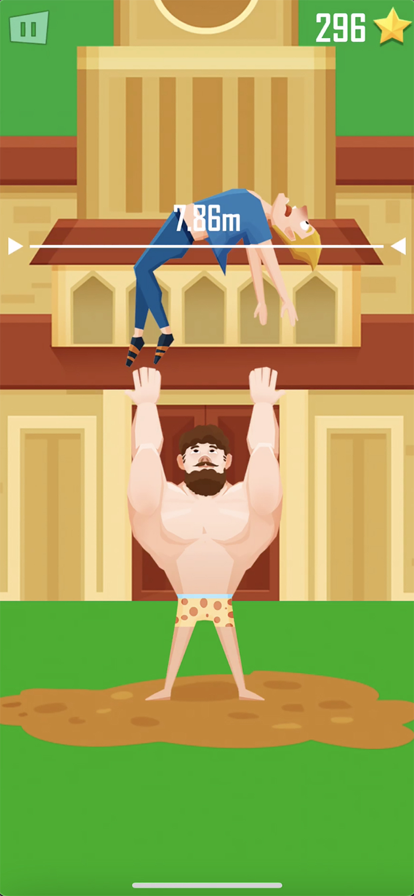 4、简单的游戏玩法,点击大力士怀中的男人,可以抛向天空。
