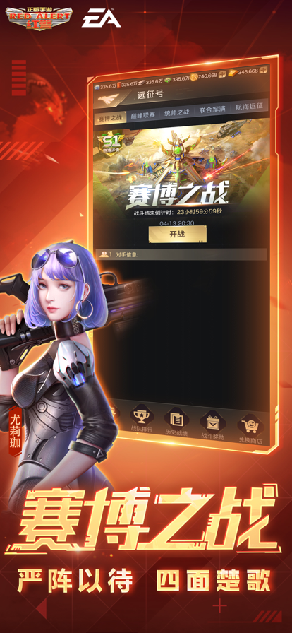《红警OL》是国内唯一获得EA正版授权的红警游戏,是以经典PC游戏“红警”为基础开发的全新手游。游戏以创新的战争策略玩法、全面的现代军事战争、多维的自由科技辅助、实时的世界联盟混战四大特色为依托,迅速成为国内最流行的战争策略游戏。战斗号角已经吹响,不死老兵热血集结。