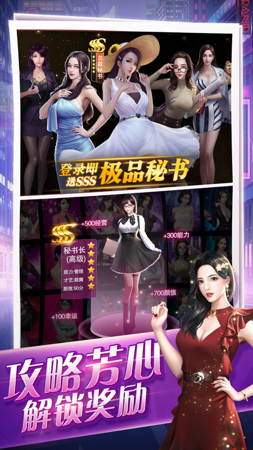 6、上百位风格特异的美女秘书任你挑选,有事秘书干,有钱真的能为所欲为。不断努力升级成为总裁解锁更多秘书场景与剧情吧!