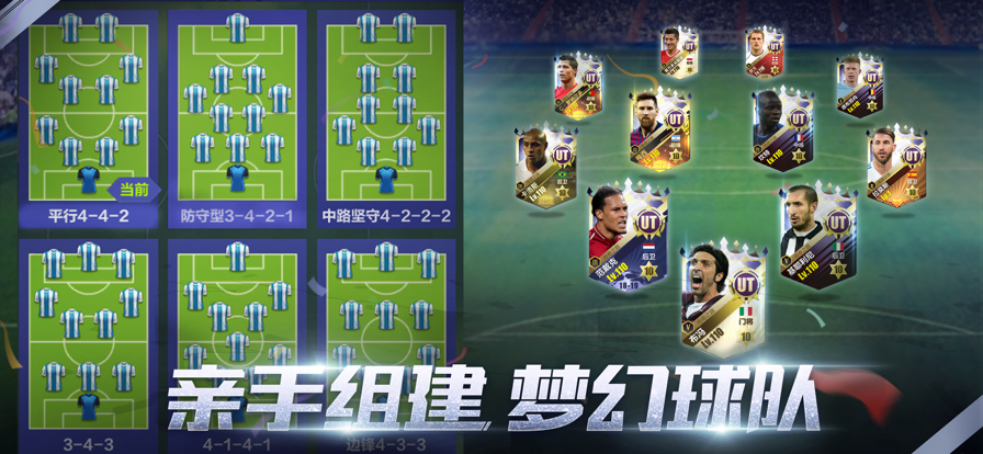 超过五千名的现役球员任你挑选,组成心目中梦之队参与顶级比赛,高度自由的阵容策略搭配和不同的编辑带来高度策略,利用不同的阵型进行比赛,指点江山运筹帷幄,再现经典射门等场景,多位足球大咖一起和你在这里比赛,感受一个人的赛场!