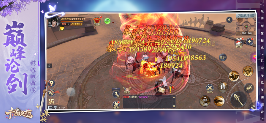 3、全自由跨服PK系统,千人对战,杀伐无止尽!巅峰仙道会、混战仙法、团队帮战,随时随地享受PK快;