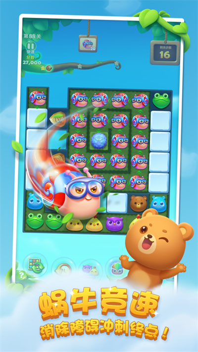 清新的藤蔓场景,明晰的面板设计,华丽爽快的特效效果,还有萌动有趣的小动物们,定会陪您度过欢乐休闲时光~