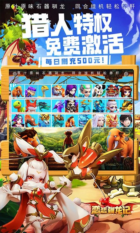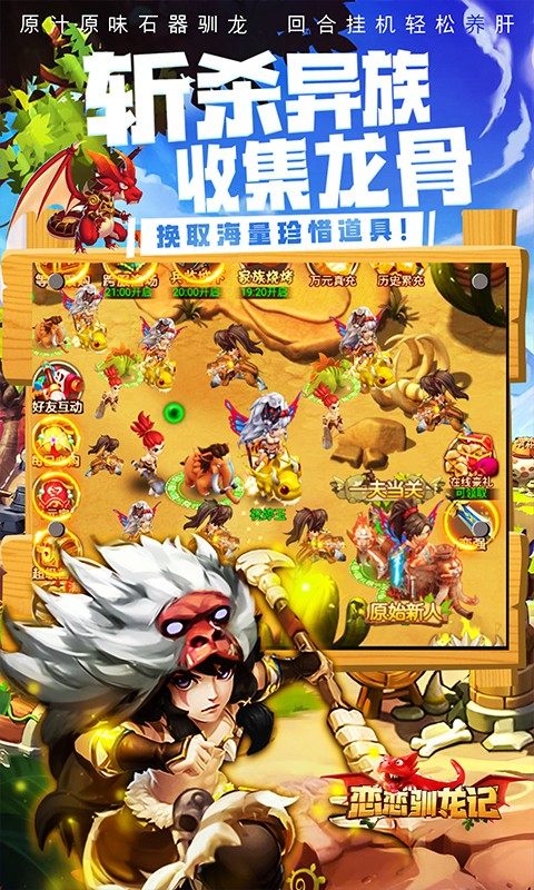 最原汁原味的石器战斗游戏,最多样化的宠物系统,最养肝的挂机体验,就是这款恋恋驯龙记!原始时期,凶兽出没,需要勇士带领守护村落,创立家族,组建站队,打造属于你的石器帝国!!! 福利度空前,不仅开局送SSR剑龙,登录还送万元真充。福利远不止如此,化身屠龙猎人进入埋骨之地,每日屠龙,每日获取大量货币!!! 超多活动玩法、跨服战斗、休闲聊天、日常养成一网打尽,自动战斗解放双手,就是轻松就是玩!