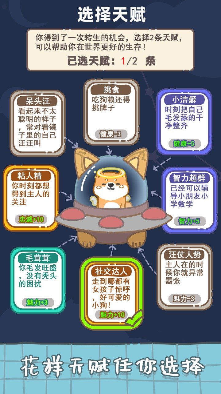 1、这款游戏的玩法跟人生重启模拟器一样,只不过主角换成了一条狗,内容也有所不同。
