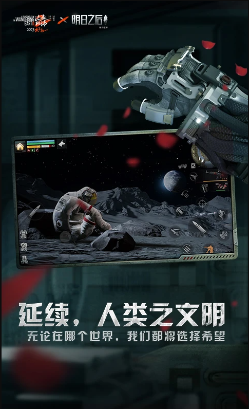 明日之后流浪地球2联动版本,玩家将在游戏里体验到流浪地球2的剧情,moss也会来带幸存者部落,期待明日之后计划,和你一起参与到冒险中去。玩家可以在游戏里体验到太空电梯的乐趣,前往空间站接受moss对你的考核,还有机械狗笨笨和你并肩作战,建造发动机,带着家园去流浪吧。