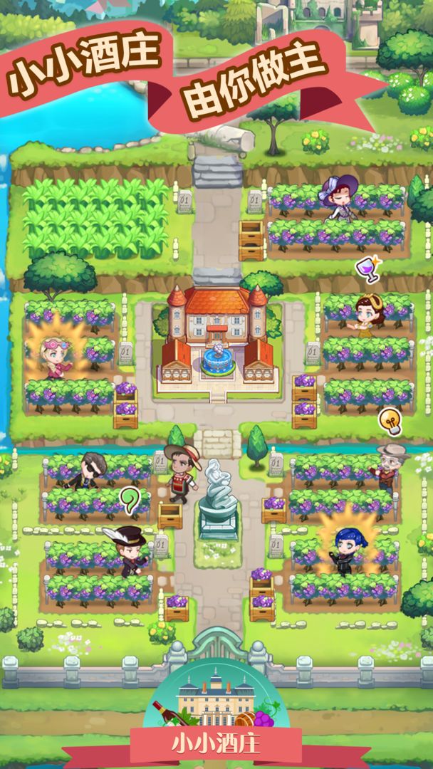 小小酒庄,一款卡通画风酒庄经营小游戏。游戏中玩家将经营自己的酒庄,完美模拟酒庄产酒全过程,从萌芽、采摘、发酵、装瓶全过程模拟,不断推广推销,将你的酒销往全球。