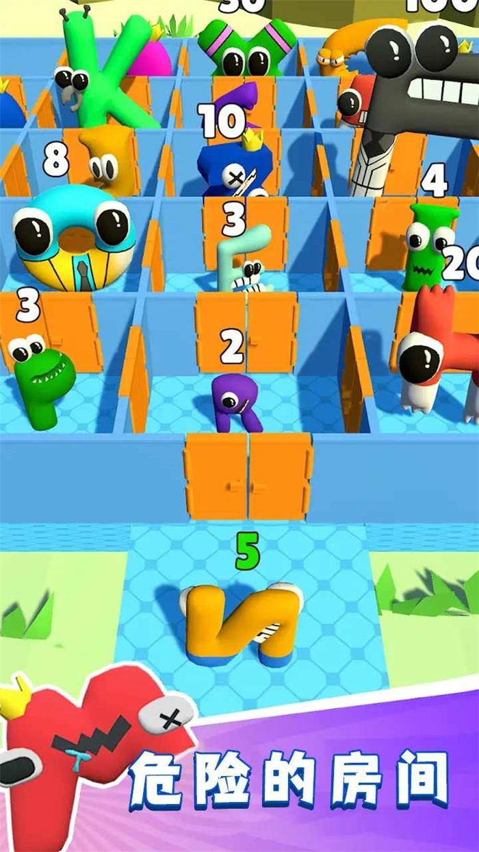 字母表房间迷宫游戏是一个迷宫闯关游戏,超多地图,控制角色在房间移动,注意躲避等级比你高的字母怪物,仔细观察,找到正确的路线走出迷宫,非常考验玩家的观察力和耐心,喜欢的小伙伴赶紧来玩吧。