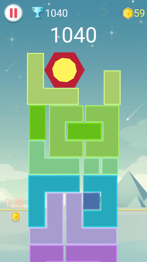 2、保持的六边形始终处于安全位置,不断的下落超越自己获得最高分!