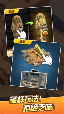 – 多种古董文物等你收藏:化石、木乃伊、棺材、远古文字石板等,每一文物都配有背景解说,玩游戏的同时还能丰富历史知识!