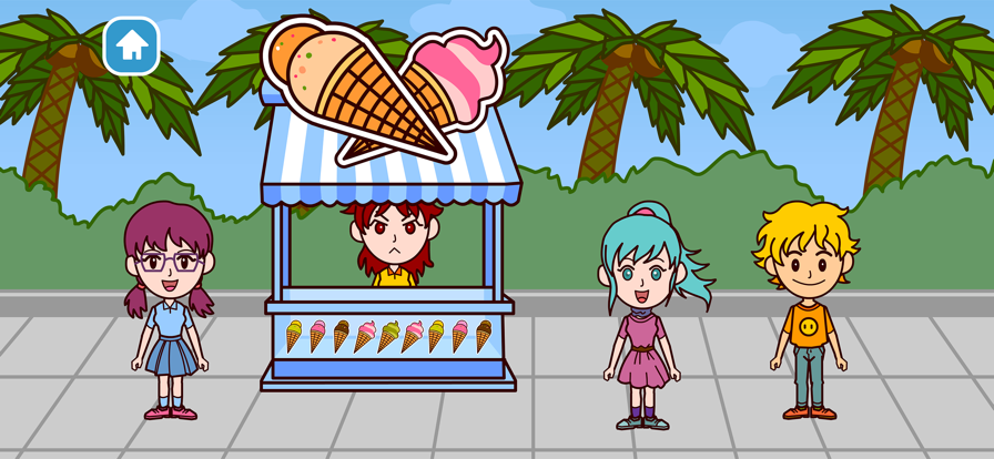 3、摩卡小镇有很多有趣的人物和不同的场景,冰淇凌店,甜品店和宠物店都可以模拟生活场景,让你互动体验有趣的小镇生活。
