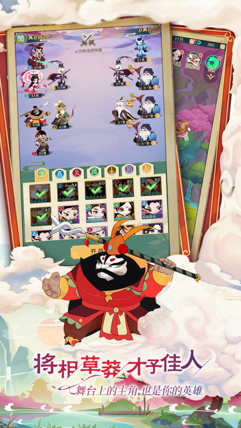 3、徜徉京剧世界,畅享国粹卡牌,新潮国风英雄放置养成手游《放放英雄》,以京剧艺术风格的绝美画风,结合超轻度放置挂机玩法,为你打造独具魅力的休闲冒险之旅。