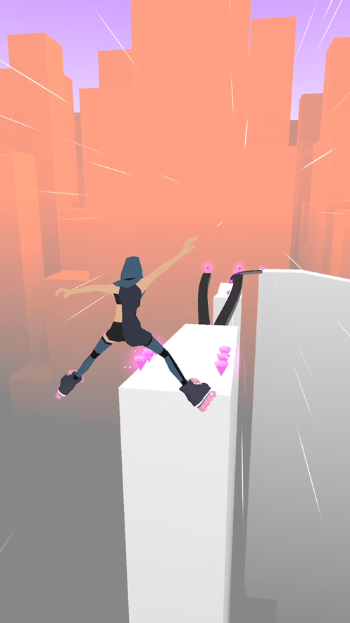 3、突破传统玩法的跑酷游戏,穿着轮滑鞋在不同的滚到上奔跑;